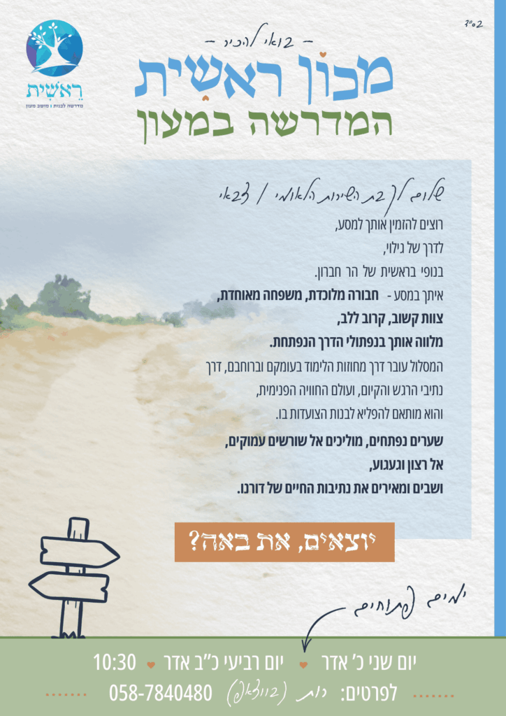 מוזמנת להצטרף אלינו ליום הכרות במדרשה, לטעום מהשיעורים, לראות את המקום ולהתראיין לשנה הבאה.