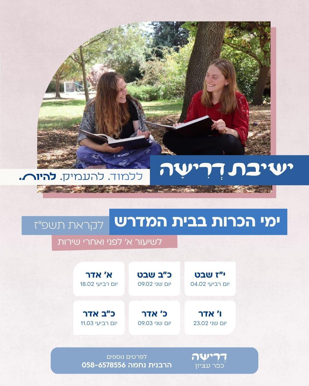 שמיניסטית? בת שירות או חיילת? מוזמנת לבוא להכיר את דרישה לקראת תשפ"ז