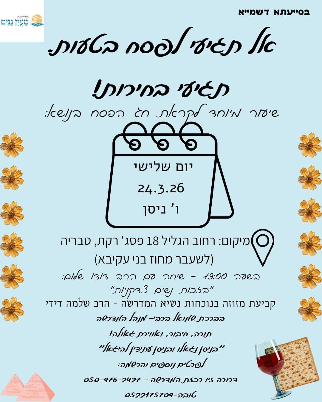 📞 שמואל ברבי (מנהל המדרשה): 058-6633503